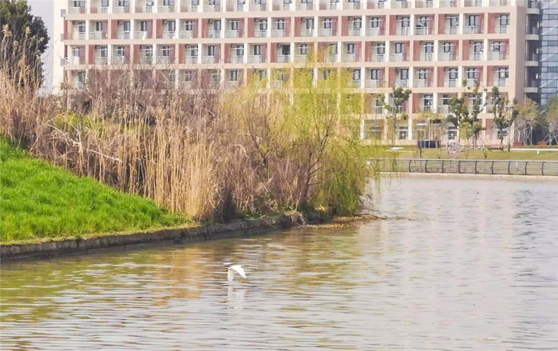 翩落在草坪中央的野鷺