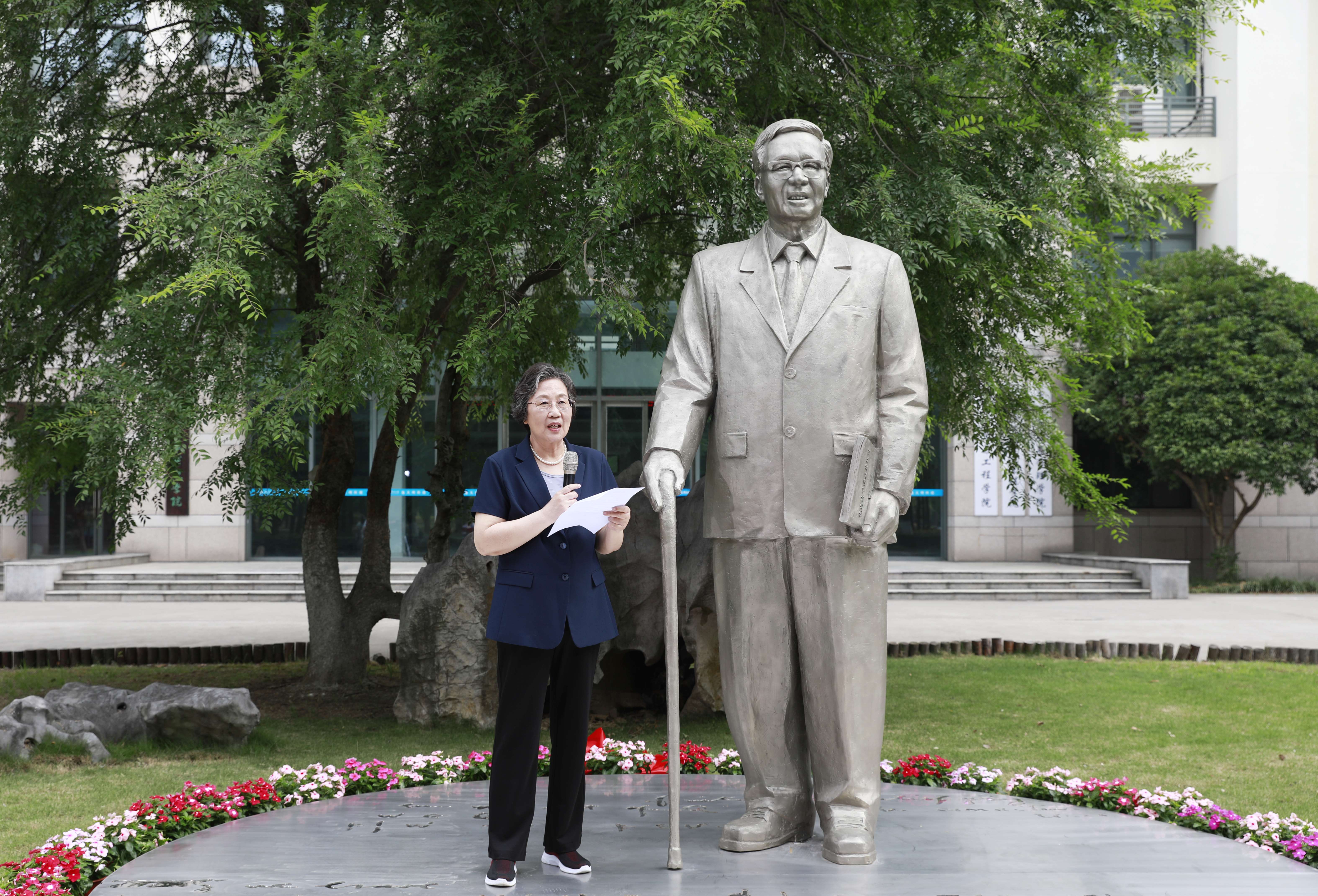 6月15日上午,華羅庚先生雕像落成揭幕儀式在科教城校區逸夫樓南門前舉行。華羅庚先生家屬華密女士、張小沖先生、張震先生,雕像作者、捐贈者冷天明,民盟常州市委專職副主委兼秘書長張翠娥、民盟經濟三支部主委趙娟,校黨委書記徐守坤,黨委常委、副校長李忠玉,黨委常委、宣傳部部長薛冰,教務處、學工處負責人、華羅庚學院全體教師及部分學生出席揭幕儀式。學院黨總支書記宣慧主持儀式。