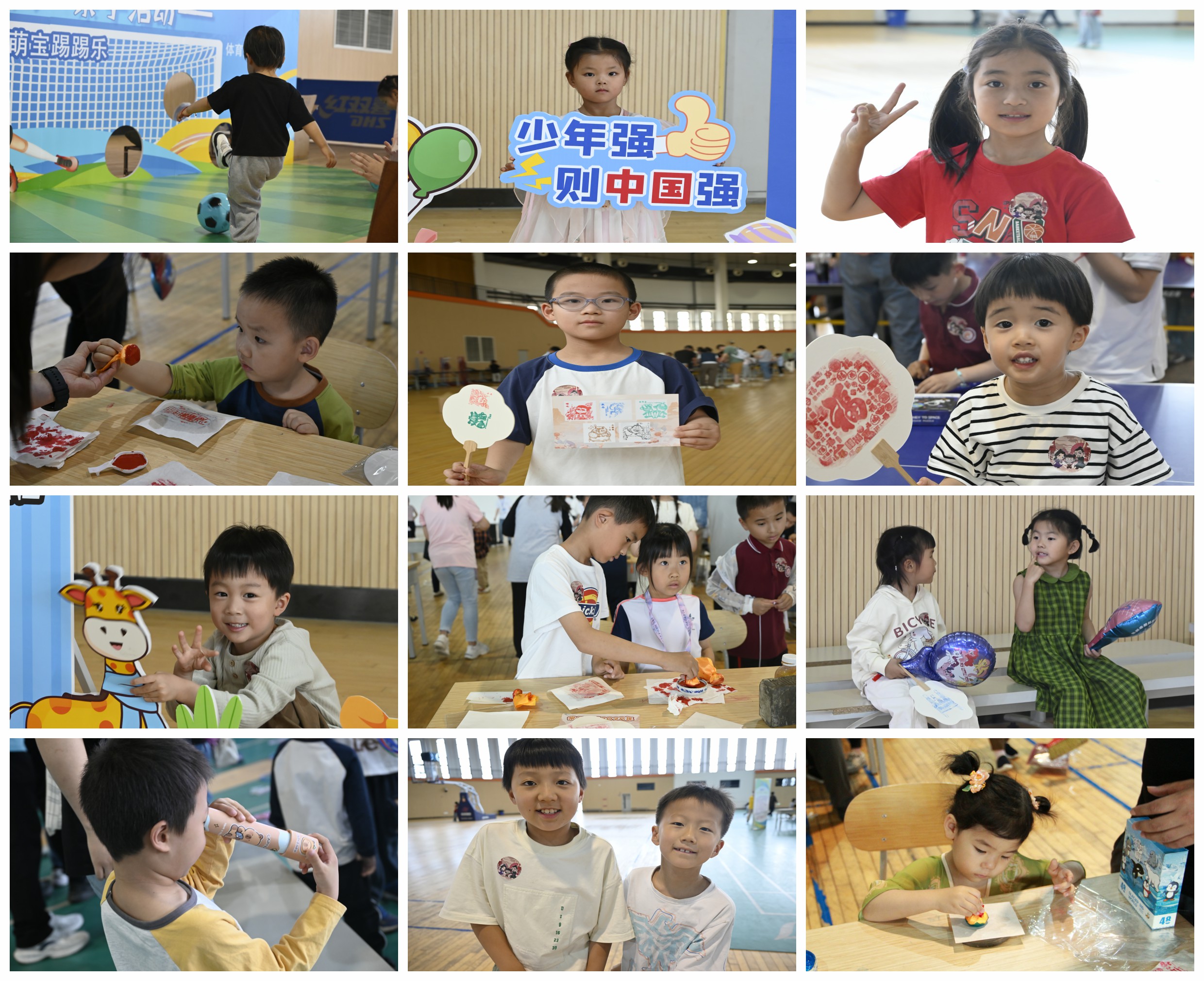 活動開場,由專業教練員帶領現場親子家庭進行了輕松愉快的熱身運動,為后續的趣味挑戰充分預熱。活動精心設置了5個集趣味性與挑戰性于一體的游戲項目——“套圈大冒險”游戲中,爸爸媽媽和孩子齊心協力,眼神專注地盯著造型酷炫的汽車模型、精致小巧的迷你書包、軟萌可愛的毛絨玩具和實用便攜的手持風扇等“獎品”,現場不時傳來套中獎品后的歡笑聲;“歡樂拼時光”游戲中,爸爸媽媽和小孩子集思廣益,充分發揮自己的觀察力和思維能力,一幅幅圖案在大家的共同努力下逐漸完整;“萌寶踢踢樂”游戲中,孩子化身為活力四射的足球小將,家長們則在一旁加油助威,為孩子進球歡呼喝彩;“愛的紀念冊”區域,爸爸媽媽和孩子們擺出各種各樣有趣有愛的姿勢,記錄下這溫馨美好的瞬間;“小小拓印師”拓印非遺文化體驗環節,在專業老師的指導下,爸爸媽媽和孩子分工合作,小心翼翼地進行著上紙、潤紙、刷紙、晾紙、拓墨等多項工序。隨著一道道工序的完成,一個個趣味橫生的圖案慢慢呈現在大家眼前。孩子們不僅體驗到了自己動手制作的樂趣,也深刻感受到了非遺文化的獨特魅力。